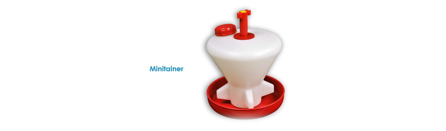 It is a semi-transparent container linked to a Mini Pan, designed for piglets at an early age that are beginning to leave maternal feeding. It can contain milk or medicated water. For supplying milk or medication.