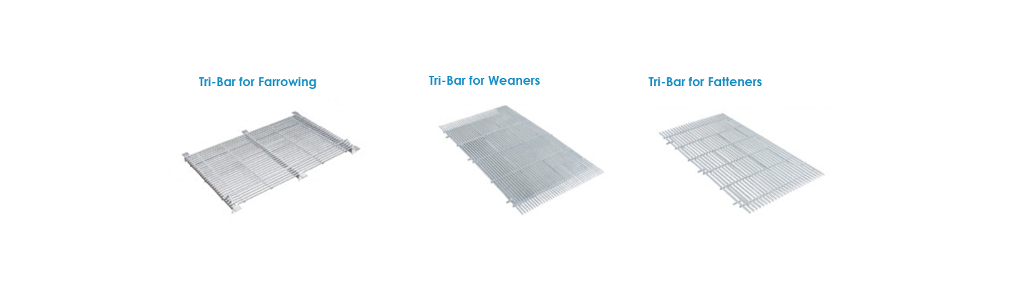 Standard with a 120 mm. wide tilting manure hatch; also available as a complete Tri-Bar slatted floor;